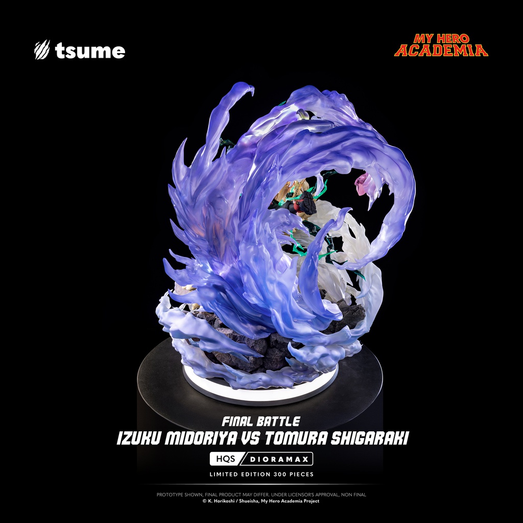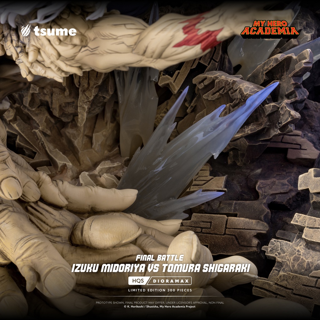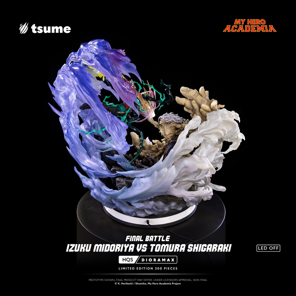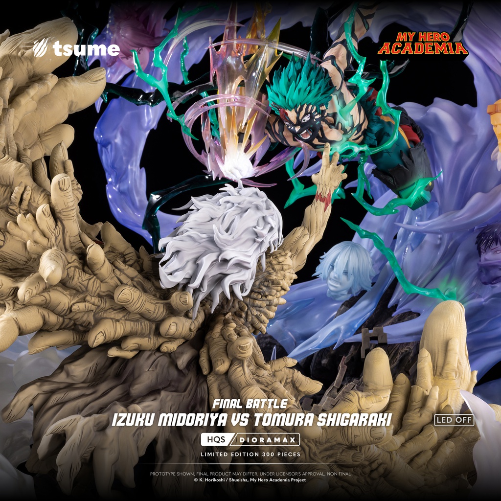 Quand tout se joue sur un seul impact, il ne reste plus que la volonté. Cette HQS Dioramax fige l’affrontement ultime dans une composition à la fois brutale et spectaculaire : Izuku Midoriya se projette dans les airs, porté par une décharge d’énergie, face à Tomura Shigaraki, dont l’emprise organique déferle sur le décor comme une vague de destruction. Entre eux : un point de collision, un instant suspendu, celui où le destin bascule.