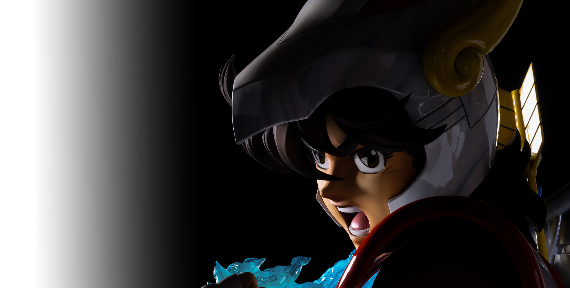 Nous avons apporté une nouveauté au niveau du traitement des yeux. Les yeux de Seiya sont en résine transparente, permettant d’y apporter une profondeur et une brillance inédite sur nos œuvres. Le rendu se veut beaucoup plus réaliste et vivant. Cette technologie, déjà utilisée sur Naruto MUB, sera portée à nos autres créations en fonction de l’échelle.